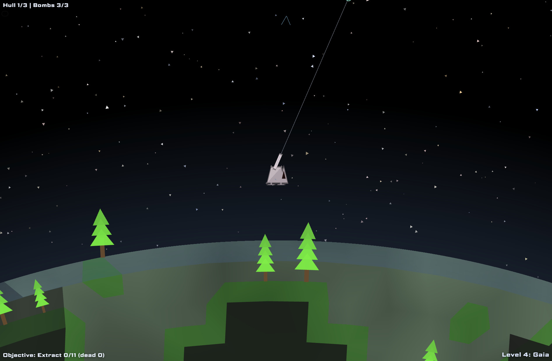 Made by James McNeill and Damien Moore for the 2026 Seven-Day Roguelike Challenge. Inspired by classic games like Lunar Lander, Thrust, Gravitar, and PixelJunk Shooter. Source code on GitHub.